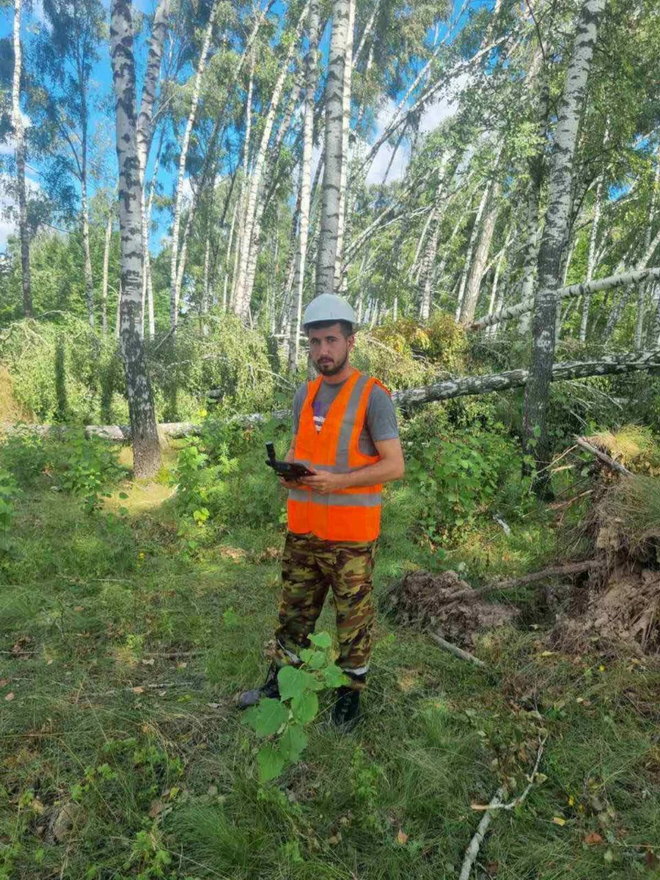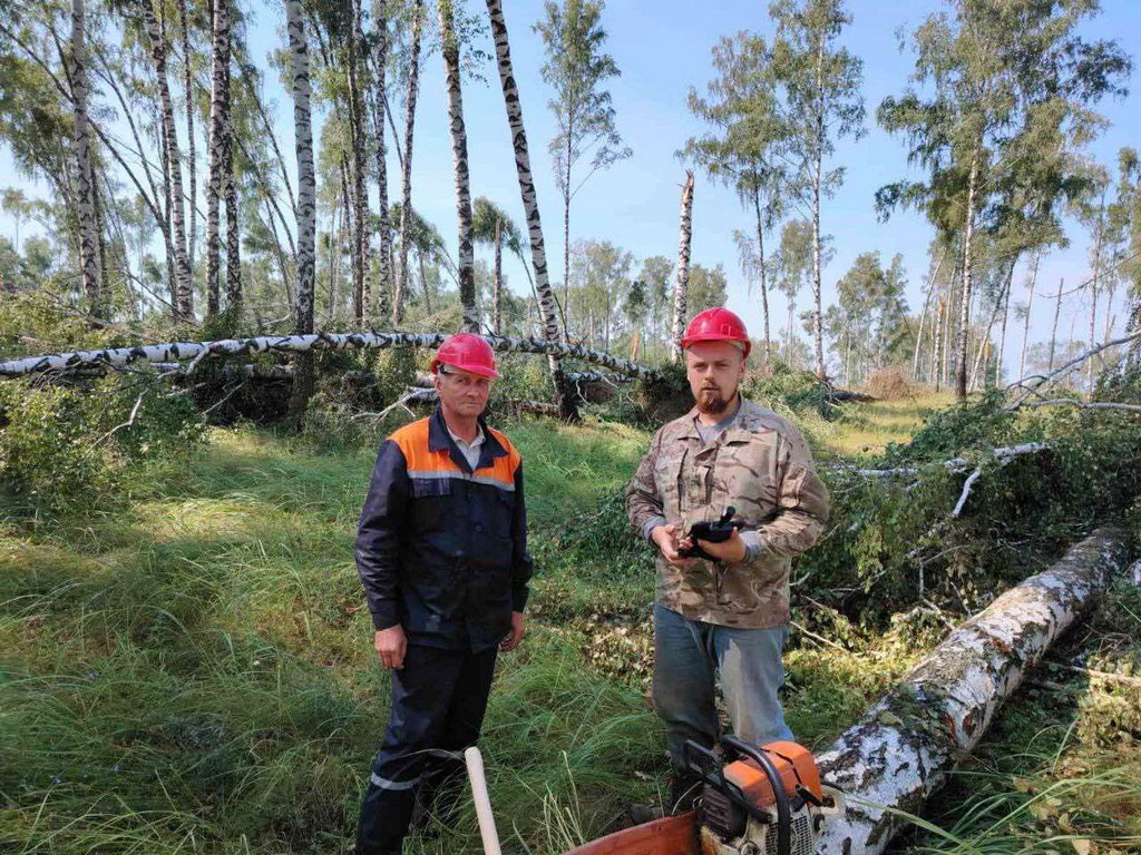 На данном этапе они производят отводы сплошных санитарных рубок на ветровально-буреломных участках лесного массива.