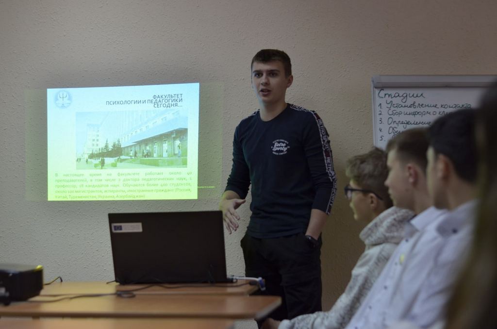 Основной интерактивной частью стало тренинговое занятие на развитие коммуникативных навыков, которое провели студенты учебной группы СР-45 Пьянков Павел и Евменькова Маргарита.