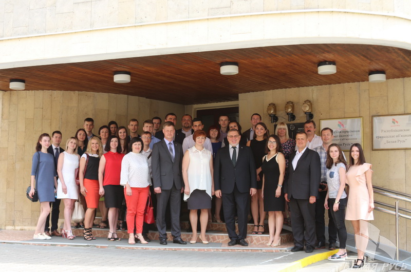 19 июня в штаб-квартире Республиканского общественного объединения «Белая Русь» состоялась встреча молодежного актива Гомельской области с Председателем объединения Давыдько Геннадием Брониславовичем. Гомельский государственный университет имени Франциска Скорины на встрече представил секретарь ПО РОО «Белая Русь» ГГУ Лашкевич Анастасия Сергеевна.
