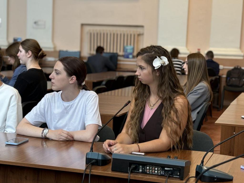 Были подведены итоги работы центра волонтерства и добровольчества Студенческого центра. Руководитель центра Ксения Бондаренко поблагодарила активистов за проделанную работу и представила членам Студсовета кандидатуру нового руководителя – студентку факультета психологии и педагогики Валерию Захарову.