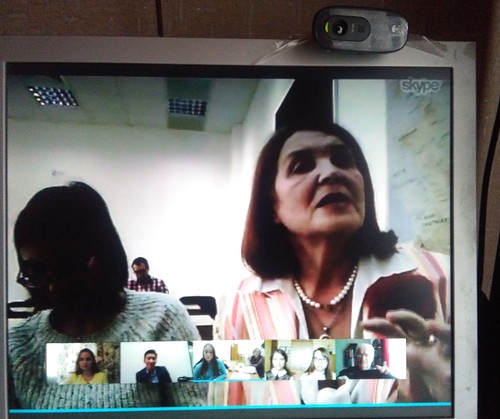 Гомельские студентки-филологи, используя возможности Skipe-общения, выступили с докладами, посвященными русской фразеологии (И. Сидорович), социолингвистической ситуации в Беларуси (В. Белодед) и осмыслению концепта «Китай» в русской лингвокультуре (А. Аксёнчикова).