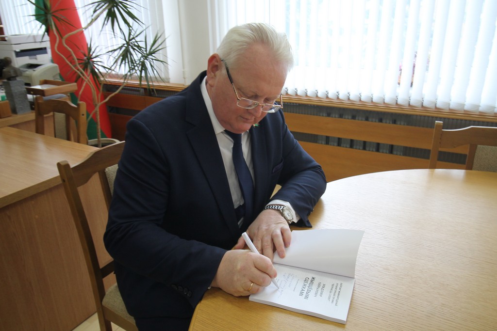 Па даручэнню кіраўніцтва Нацыянальнага сходу Рэспублікі Беларусь узнагароду уручыў член Пастаяннай камісіі па правах чалавека, нацыяльных адносінах і сродках масавай інфармацыі Палаты прадстаўнікоў, кіраўнік рабочай групы Нацыянальнага сходу Беларусі па справах беларусаў замежжа Уладзімір Гаўрыловіч.