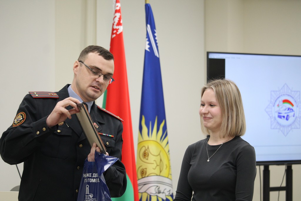 Кроме того, старший инспектор группы по агитации и пропаганде МО ГАИ УВД Гомельского облисполкома майор милиции Дарья Андреевна Ткачёва напомнила про основные правила безопасности на дороге.