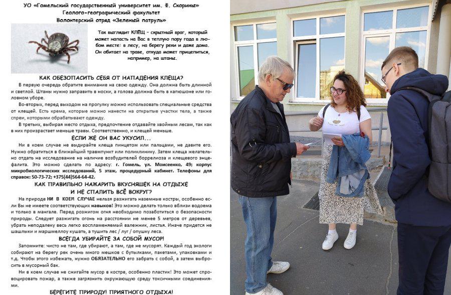 志愿者学生与公众“人与森林”举行了信息交流活动。 志愿者问路人在森林中对安全措施的了解,还分发了备忘录和有用的小礼物,以激励人们安全地在大自然中度过假期。