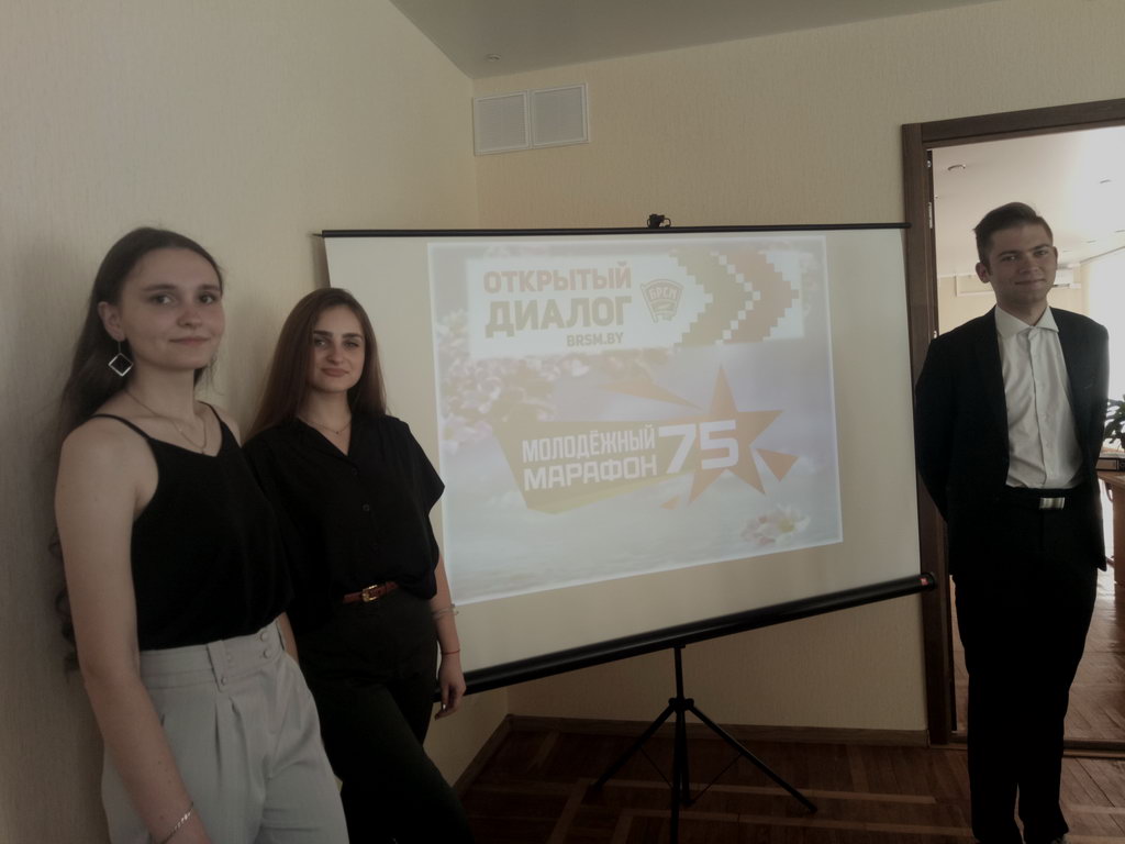18 июня студенты исторического факультета нашего университета приняли участие в республиканском молодежном марафоне "75"», посвященном 75-й годовщине освобождения Беларуси от немецко-фашистских захватчиков. Студенты третьего курса Инна Ненадовец,  Дарья Дивоченко и Владислав Ковалев стали участниками прошедшего в рамках марафона Открытого диалога «Беларусь помнит!», в рамках которого  состоялось обсуждение целого ряда проектов, посвященных актуализации и сохранению памяти о событиях Великой Отечественной войны. В рамках данного мероприятия ребята презентовали проект, действующий при кафедре истории Беларуси СНИЛ «Друзья музея» под названием «Интерактивный квест по мемориалам г. Гомеля, посвященным истории Великой Отечественной войны». Студенты рассказали о том, как проходила работа по его подготовке, основных этапах реализации и дальнейших перспективах развития проекта. Также в Открытом диалоге «Беларусь помнит!» приняли участие представители администрации центральной, областной и городской организаций Белорусского республиканского союза молодежи, являющегося одним из главных организаторов данной республиканской акции, ветераны Великой Отечественной войны, глава Белорусского военно-исторического клубного объединения «Честь мундира», студенческая молодежь.