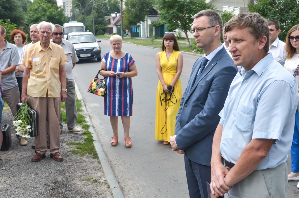 Вопрос установки мемориальной доски был поднят в конце апреля жительницей Гомеля на приеме граждан по личным вопросам депутатом Гомельского областного Совета депутатов 28 созыва Сергеем Хахомовым. Тогда выяснилось, что такая табличка на памятном доме была, но с течением времени пришла в негодность и затерялась. Благодаря депутатскому запросу, направленному в Гомельский городской исполнительный комитет, на заседании топонимической комиссии было принято решение восстановить утраченный объект и в торжественной обстановке вернуть на прежнее место.