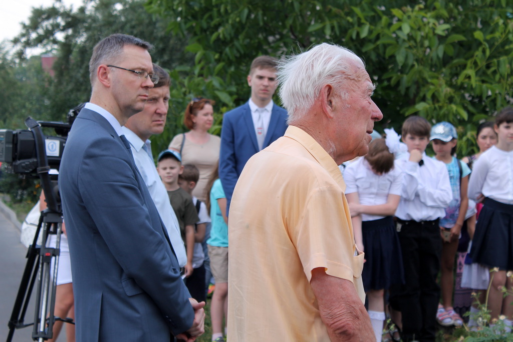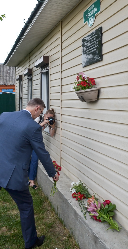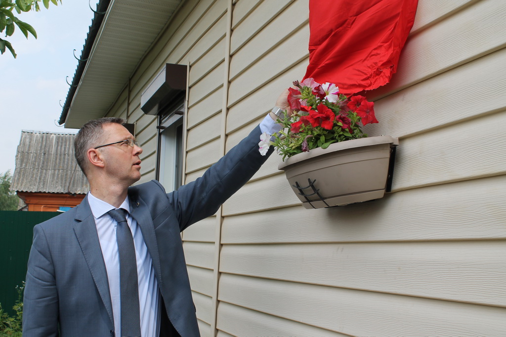 Право открыть мемориальную доску было предоставлено Сергею Анатольевичу Хахомову. Завершилось мероприятие возложением цветов.