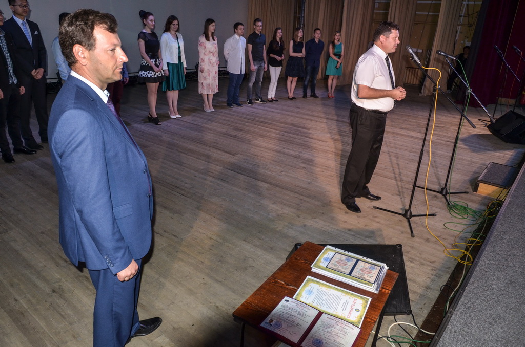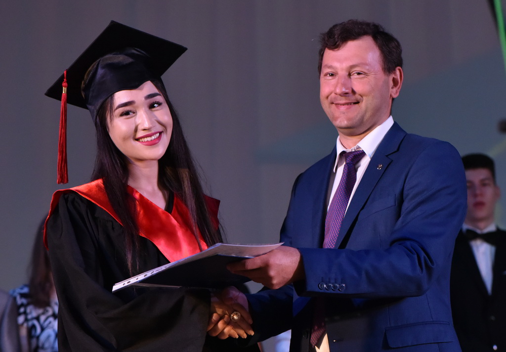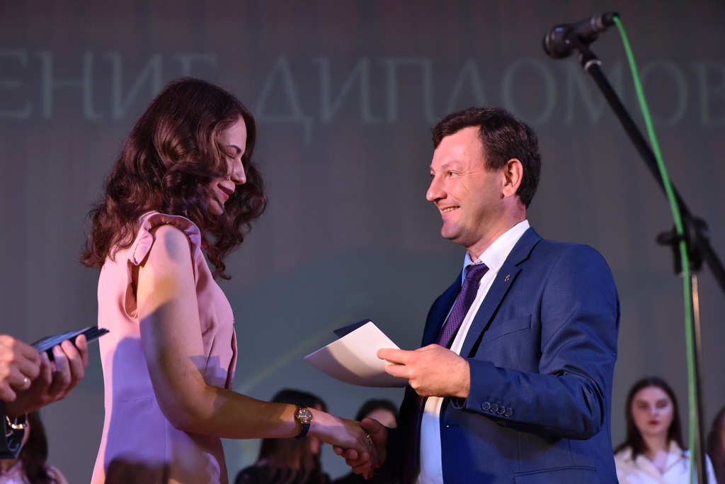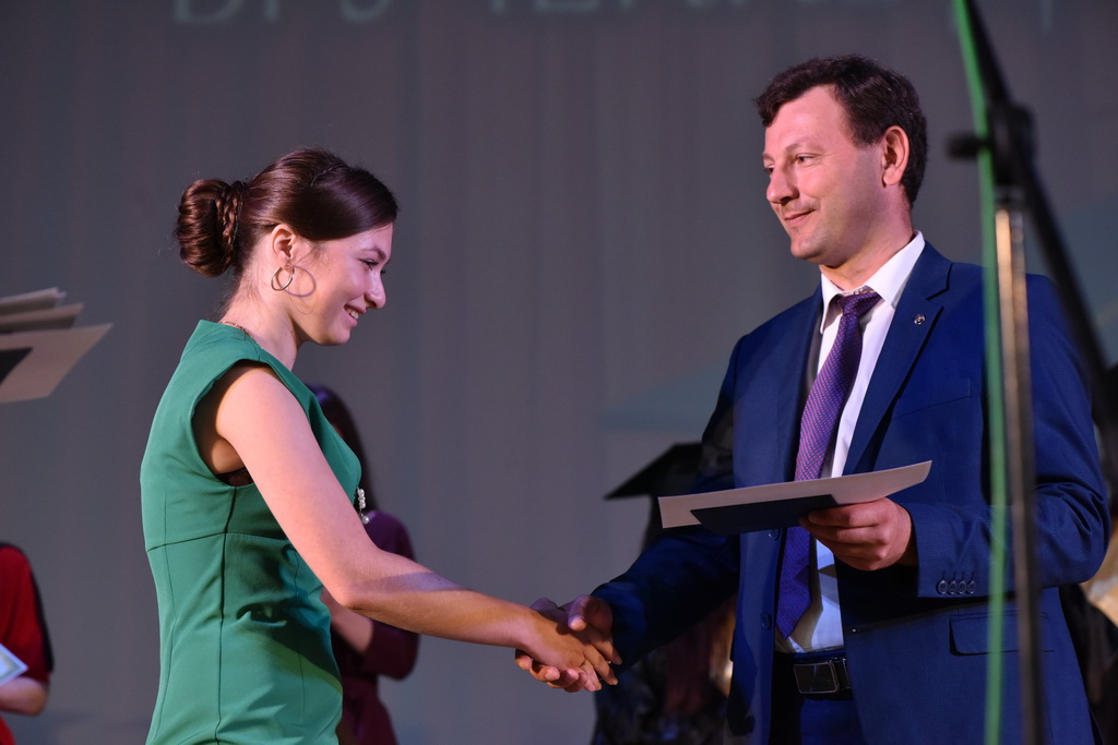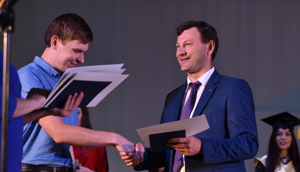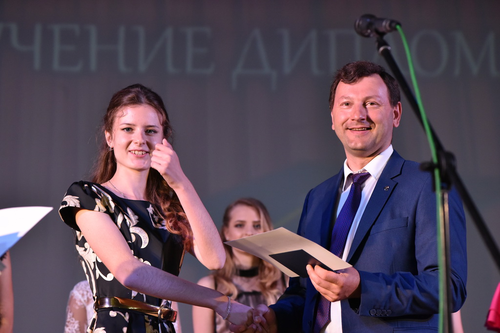 В этот знаменательный и праздничный день молодые специалисты получали дипломы из рук первого проректора ГГУ Андрея Крука. В своём выступлении проректор не только поздравил выпускников, но и нацелил на достижение новых высот в профессиональном и личностном развитии.