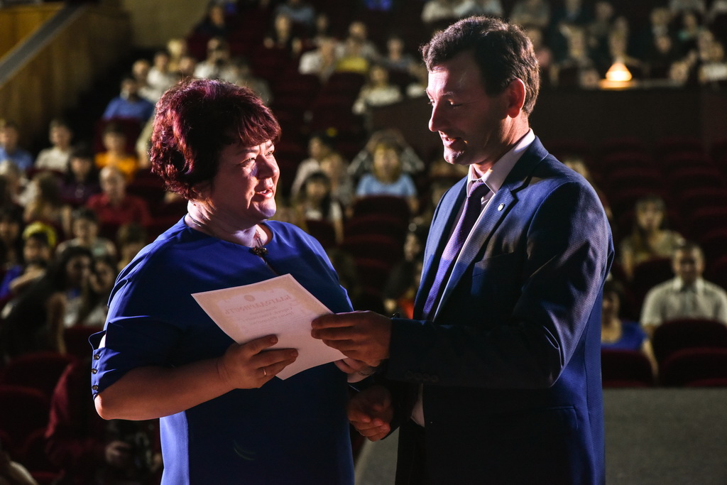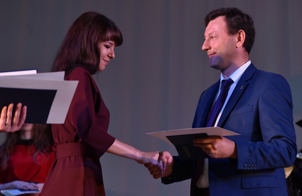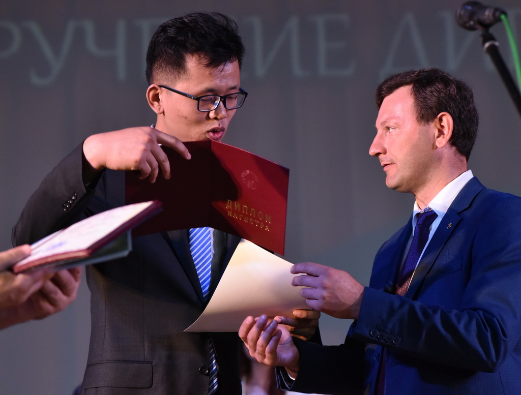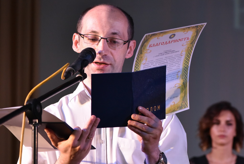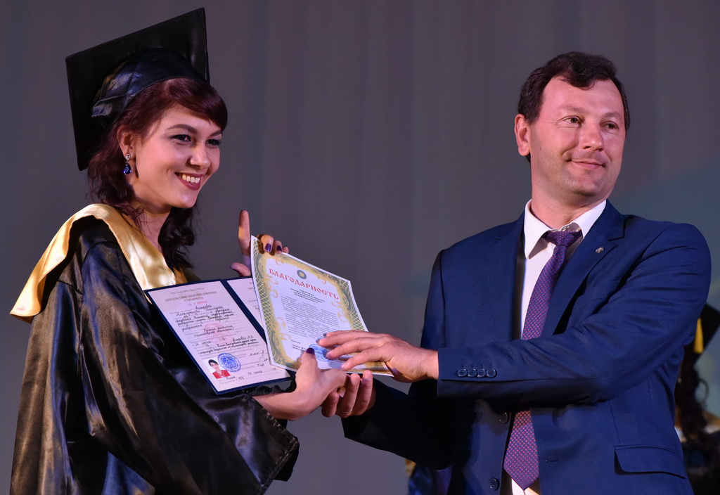 В этот знаменательный и праздничный день молодые специалисты получали дипломы из рук первого проректора ГГУ Андрея Крука. В своём выступлении проректор не только поздравил выпускников, но и нацелил на достижение новых высот в профессиональном и личностном развитии.