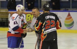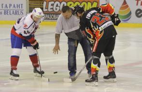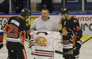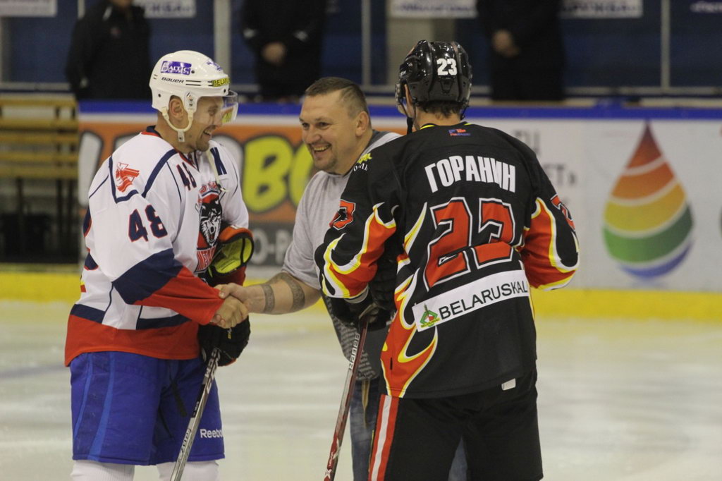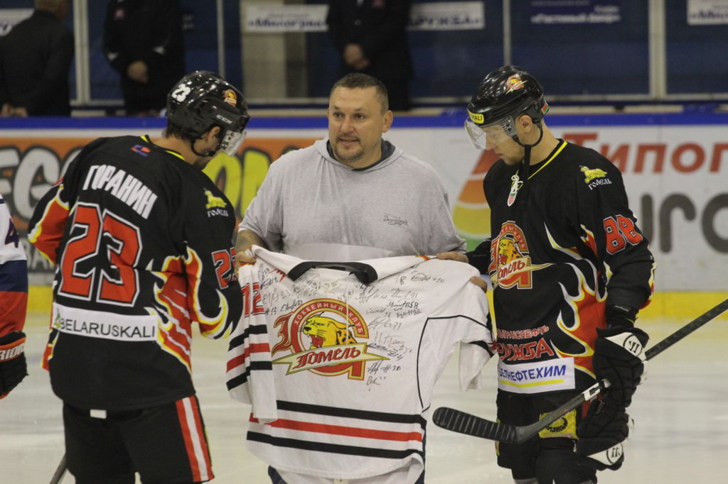 Выражая признательность, хоккеисты вручили Игорю Викторовичу символически вброшенную им шайбу и хоккейный свитер с автографами всех игроков хоккейного клуб «Гомель».