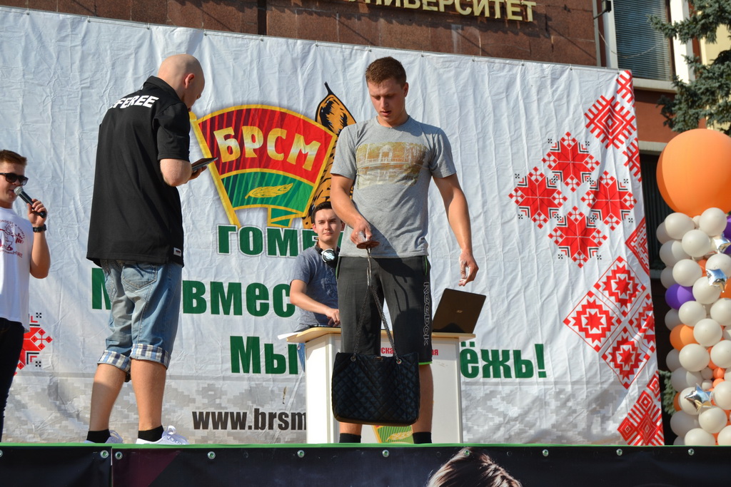 В рамках празднования Дня города на площадке возле Гомельского государственного медицинского университета прошло спортивно-силовое состязание "Самый сильный гомельчанин", организованное гомельской городской организацией ОО "БРСМ". В числе самых сильных жителей города оказался представитель нашего университета! Им стал студент биологического факультета Алексей Карповский, который достойно представил Гомельский государственный университет имени Ф. Скорины на данном мероприятии и занял почётное второе место в весовой категории до 95 кг.