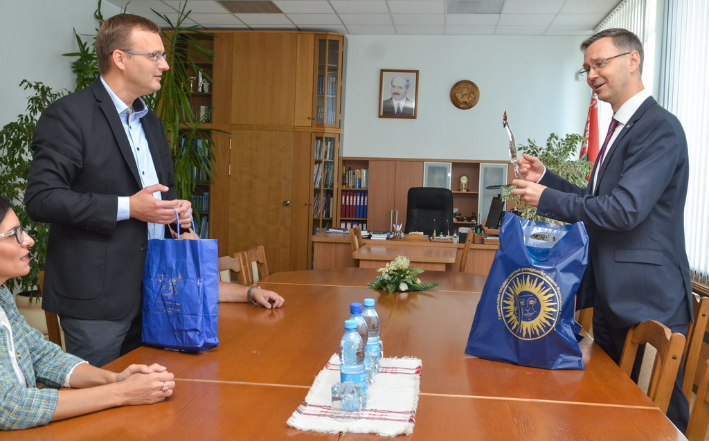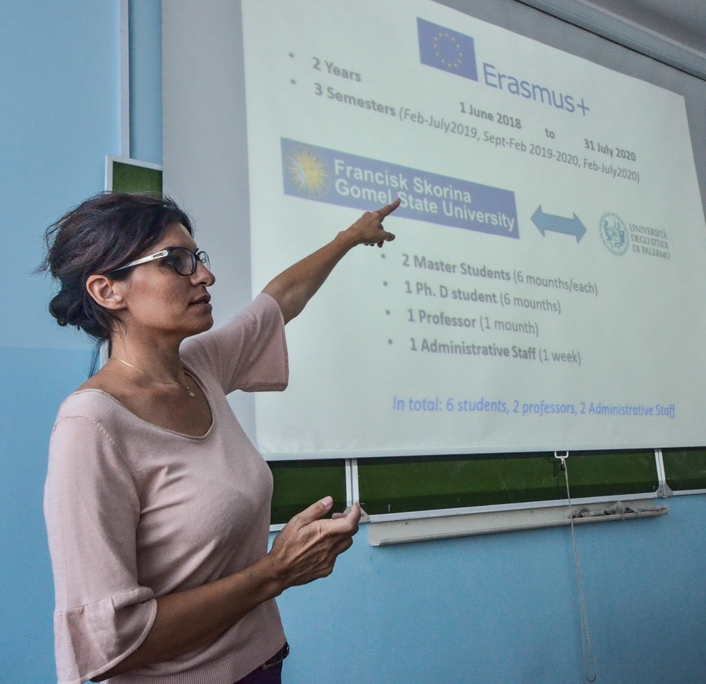 20 сентября состоялась встреча ректора университета Сергея Хахомова с  заместителем директора Института низких температур и структурных исследований имени В. Тжебятовского Польской Академии Наук (г. Вроцлав, Польша) Дариушем Хреньяком и доцентом Университета Палермо (г. Палермо, Италия) Марией Луизой Саладино. На встрече шла речь о расширении сотрудничества между заведениями, создании совместных проектов, работе белорусско-польской проблемной научно-исследовательской лаборатории перспективных материалов. Особое внимание было уделено обсуждению проекта «ERASMUS+ KA107 - International Credit Mobility».  Этот проект,  представленный Университетом Палермо в 2018 году, получил оценку Национального института документации, инноваций и образовательных исследований (Indire). Его основной целью является установление соглашений о мобильности для отправки и приёма студентов, аспирантов, сотрудников и преподавателей в странах-партнерах по всему миру.