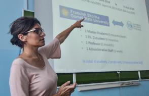 Для магистрантов и аспирантов нашего университета была организованна встреча, на которой Мария Луиза Саладино рассказала о специфике программы, требованиях к участникам, специальностях, сроках обучения, грантах, а также представила презентацию об Университете Палермо.
