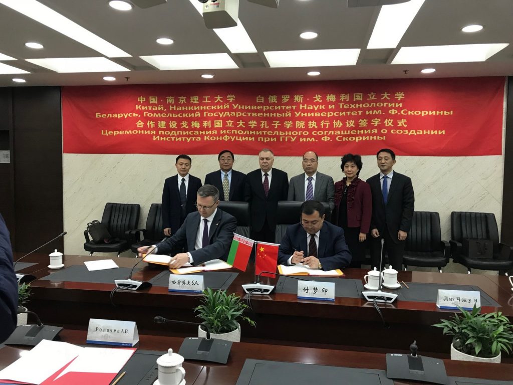 10 декабря 2017 года в рамках визита делегации Гомельского госуниверситета в Китай прошла церемония подписания исполнительного соглашения о создании института Конфуция в ГГУ им. Ф. Скорины.