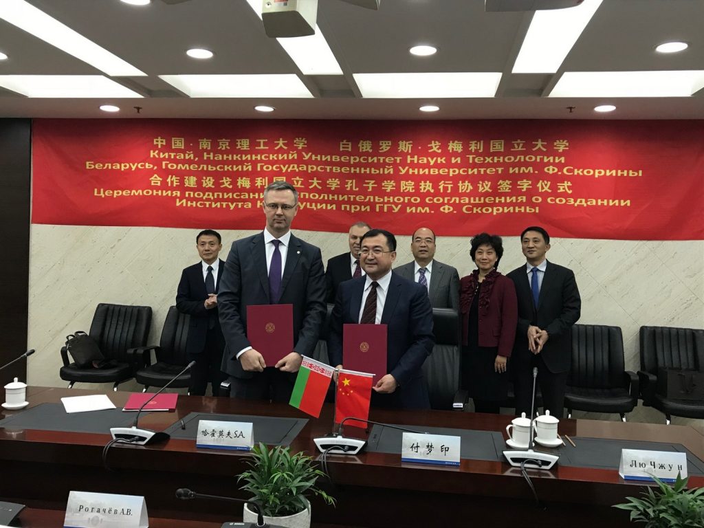 С белорусской стороны соглашение подписал ректор нашего вуза Сергей Хахомов, с китайской стороны – ректор  Нанкинского университета науки и технологии Фу Мэнин.