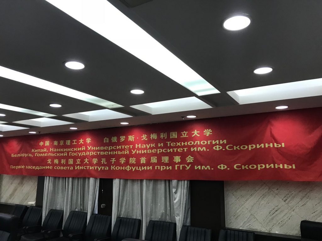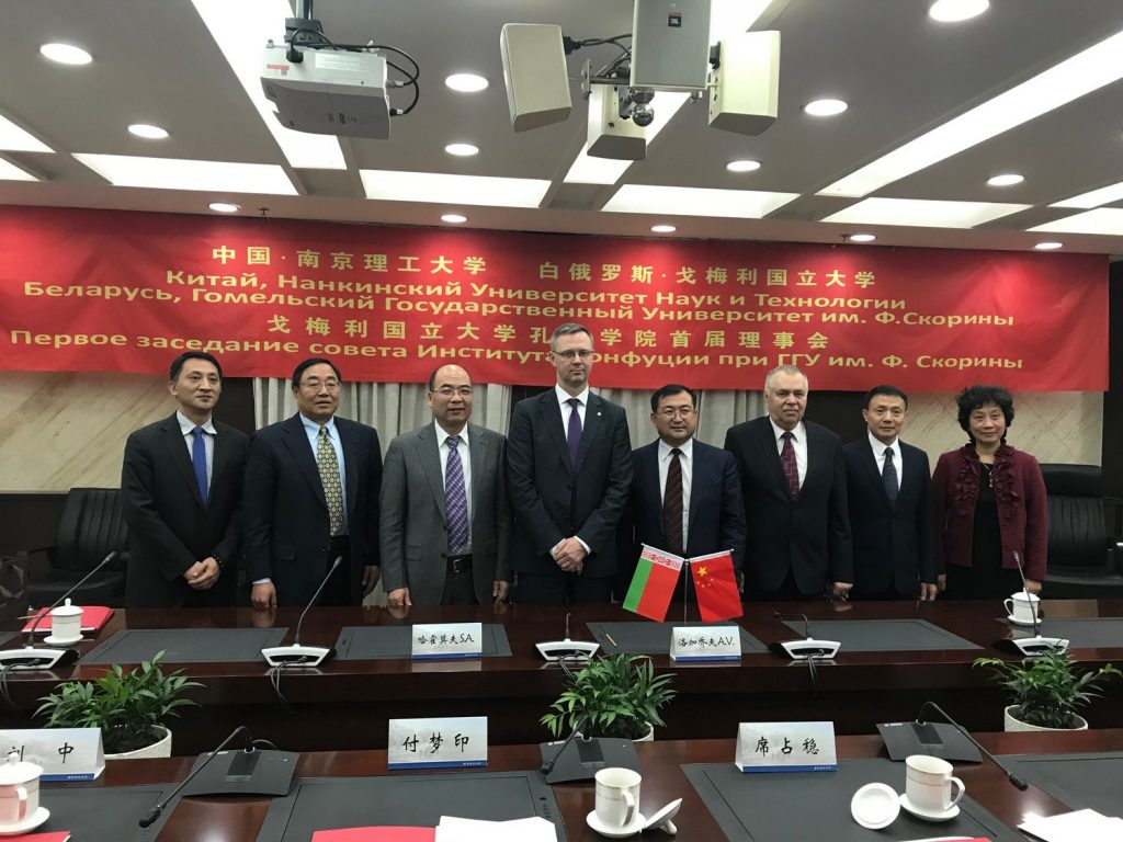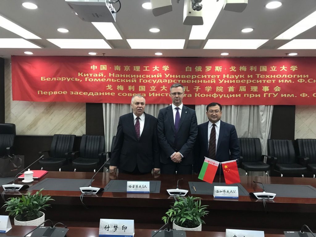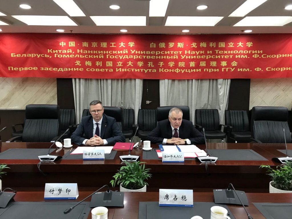 На первом заседании совета института Конфуция ГГУ в Нанкинском университете науки и технологии были утверждены директоры (с белорусской стороны  – профессор Александр Рогачев,  с китайской – профессор Ван Лэй), согласована торжественная церемония открытия института Конфуция в гомельском вузе, которая состоится 20 декабря 2017 года, обсужден план работы института Конфуция ГГУ им. Ф. Скорины на 2018 год, утверждено Положение об институте Конфуция  и т.д.