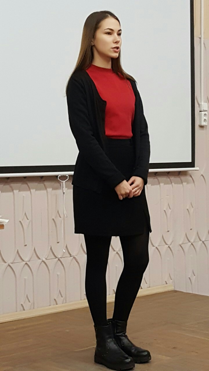 С приветственным словом обратилась к присутствующей аудитории декан факультета иностранных языков, к.ф.н., доцент, Сажина Елена Владимировна. Елена Владимировна поздравила с предстоящим юбилеем, пожелала успехов в учебе, удачной подготовки к предстоящей сессии. Затем ведущие Колесников Глеб и Кишко Марина продолжили мероприятие, читая цитаты из известных литературных произведений белорусских авторов.