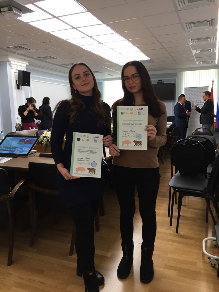 Юлия и Дарина получили сертификаты участников, хорошие впечатления и большой опыт участия в переговорном процессе и организации командной работы. «Союзная лига дебатов – это большой опыт публичных выступлений, возможность испытать свои навыки убеждения, это новые знакомства и новые знания», – делятся девушки.