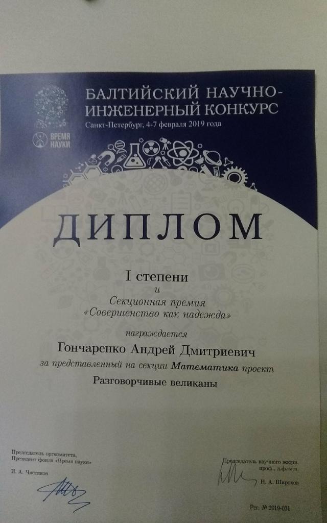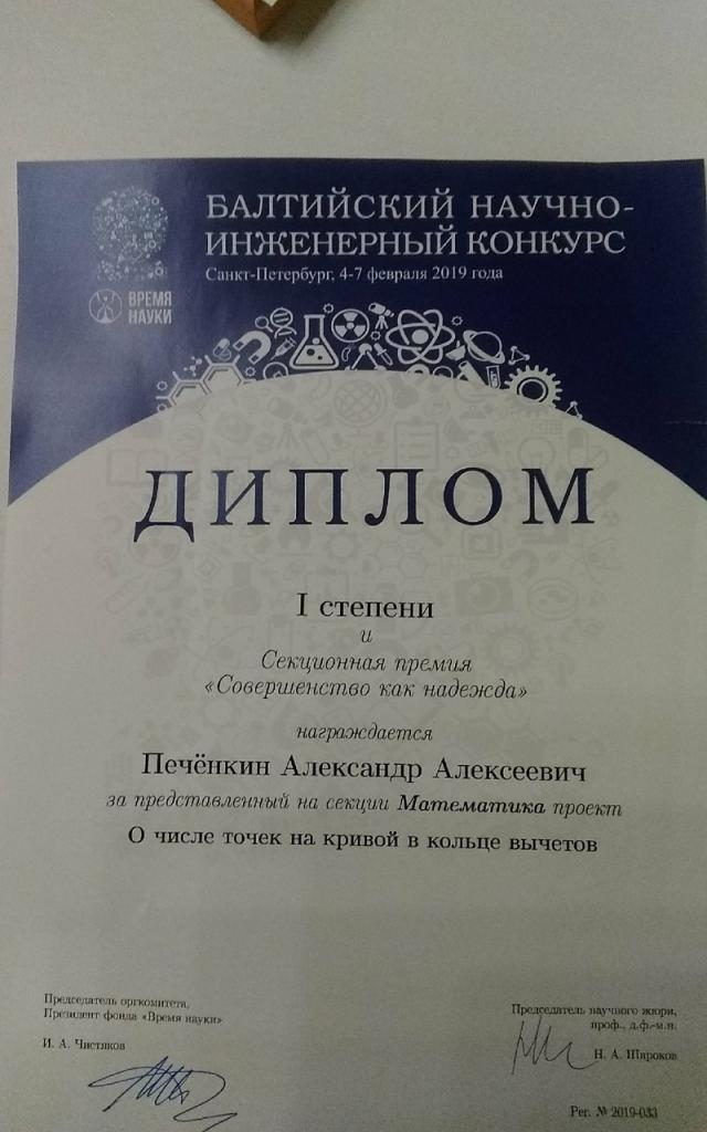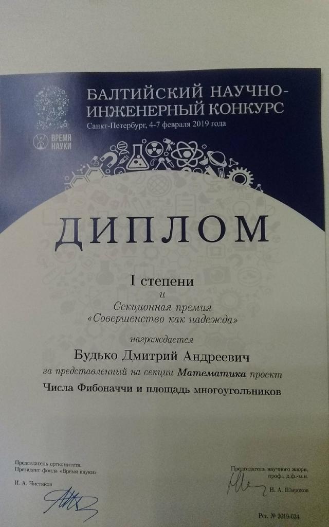 Кроме того, работа Дмитрия Будько была отмечена специальным дипломом Санкт-Петербургского отделения Математического института имени В.А. Стеклова РАН.