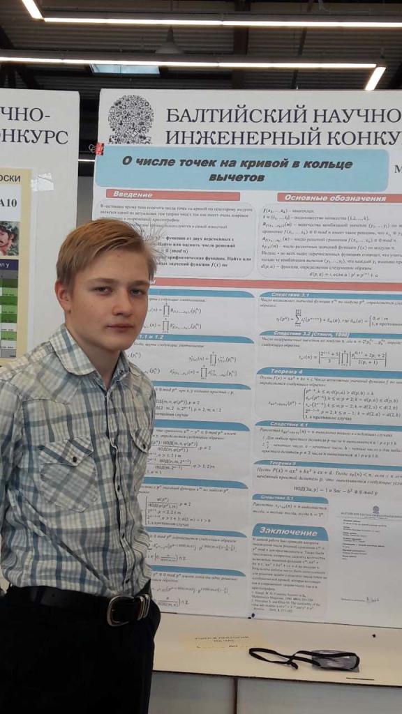 C 4 по 7 февраля в г. Санкт-Петербург прошел юбилейный XV Балтийский научно-инженерный конкурс. В нем приняло участие около 500 юных ученых из России и стран ближнего зарубежья, которые представили более 400 научных проектов в области математики, физики, химии, медицины, биологии, экологии, программирования, техники и робототехники, наук о Земле. Оценивало работы участников компетентное жюри, в состав которого входили 40 докторов наук, более 100 кандидатов наук, аспирантов, преподавателей вузов и научных центров Санкт-Петербурга и России.
