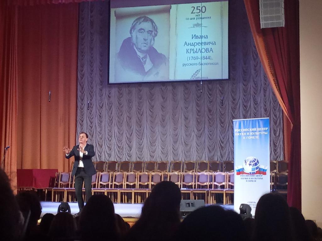 13 февраля студенты 2 курса филологического факультета группы РФ-21 вместе с преподавателем кафедры русской и мировой литературы И. Б. Азаровой посетили Гомельский колледж искусств им. Н. Ф. Соколовского. Там состоялось мероприятие, посвященное 250-летию со дня рождения Ивана Андреевича Крылова. Как известно, он автор не только полюбившихся всеми басен, в его творческом диапазоне присутствует журнальная сатира, комедии, сатирические повести… По словам А. С. Пушкина, И. А. Крылов «самый народный наш поэт».