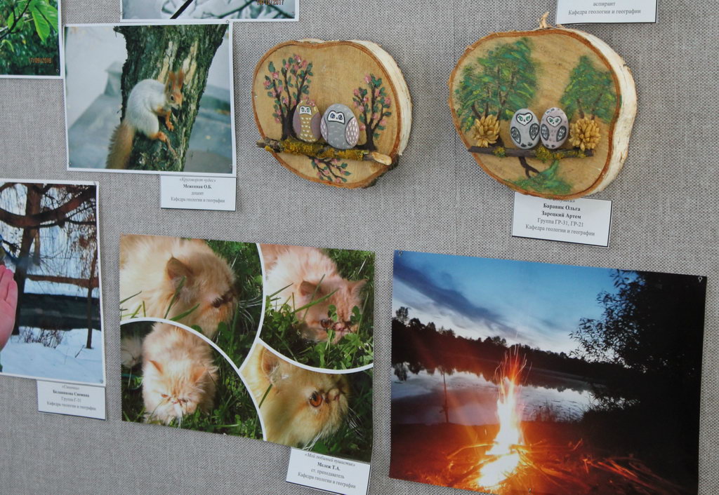 Открыл экспозицию проректор по воспитательной работе Юрий Никитюк. В своем приветственном слове он поблагодарил всех, кто принял участие в наполнении выставочного зала авторскими работами за неравнодушие к проблеме экологии и активное желание поделиться с окружающими своим восхищением красотой окружающего мира. Волонтерский отряд «Созвездие» запустил акцию «Большая помощь маленькому другу» для бездомных животных ГГМООЗЖ «Доброта». Все неравнодушные к судьбе братьев наших меньших могут внести свою лепту в хорошее дело и пожертвовать для бездомных животных корм, ошейники, поводки, денежные средства, которые будут потрачены на приобретение медикаментов и проведение различного вида медицинских процедур.
