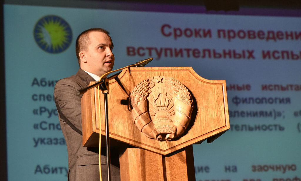 В актовом зале прошла торжественная часть мероприятия. Свою приветственную речь проректор по учебной работе Игорь Семченко начал с объявления победителя интеллектуального соревнования «Кубок ГГУ по тестированию». В этот раз победа досталась Гомельскому государственному областному лицею, ребята набрали 569 баллов. Проректор рассказал про достижения университета в образовательной, научной и международной деятельности. Плавно переходя к цифрам и срокам проведения вступительной кампании, перед гостями выступил доцент кафедры математических проблем управления и информатики Андрей Клименко. Завершило мероприятие выступление декана факультета довузовской подготовки Дмитрия Ходановича. Он рассказал о принципах регистрации на тестирование, о графике утвержденного ЦТ, возможности получить квалифицированную онлайн-консультацию.