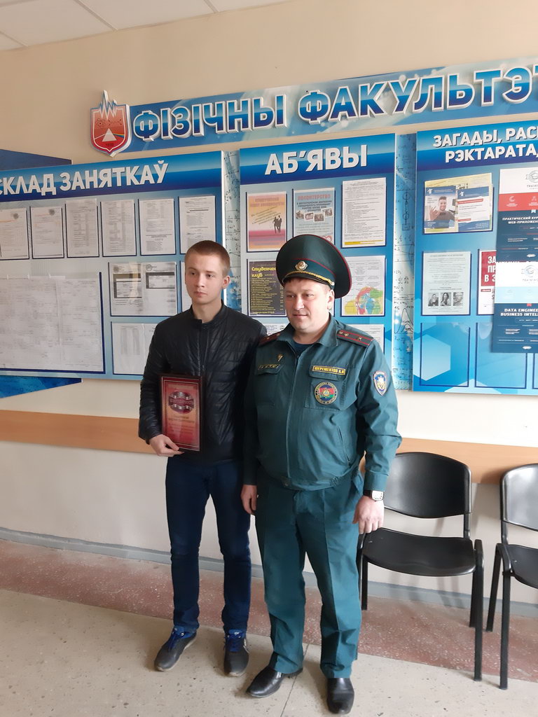 Большой поступок студента не остался без внимания окружающих. Сегодня он получил Благодарность от Гомельского городского отдела по чрезвычайным ситуациям, о нем напишет журнал «Юный спасатель». Однако своей внезапной славы парень немного стесняется: