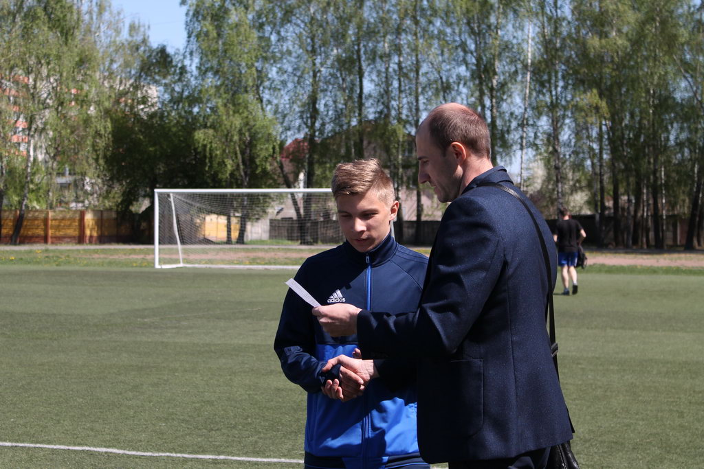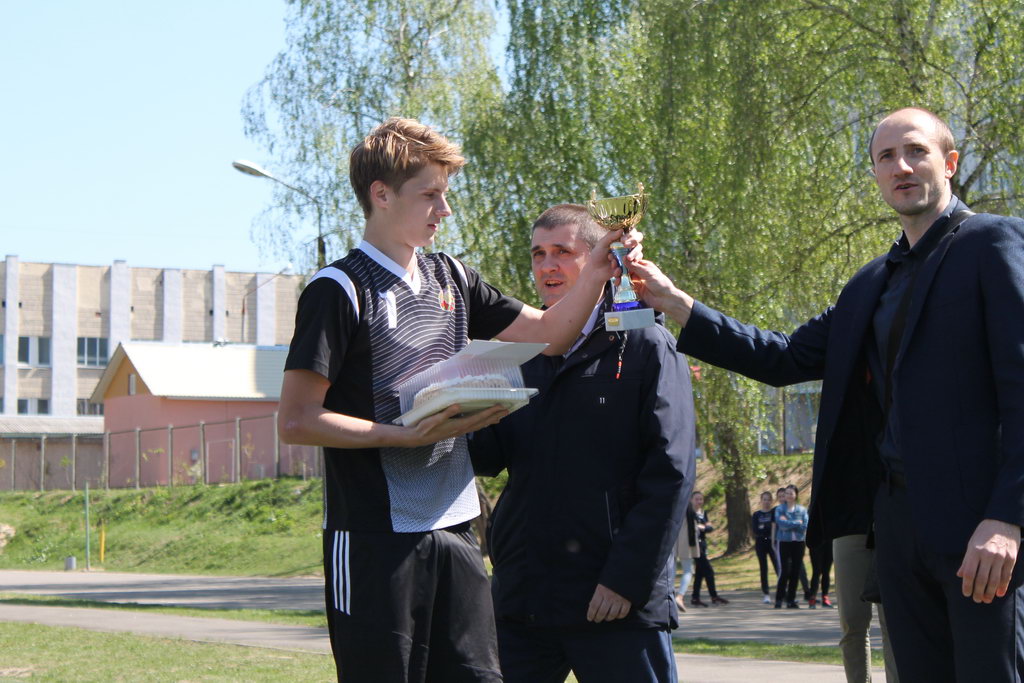 После захватывающего финального матча проректор по воспитательной работе Юрий Никитюк и начальник спортивного клуба Сергей Кулешов наградили команды победителей и призеров дипломами и кубками от спортивного клуба и сладкими призами от профкома студентов ГГУ.