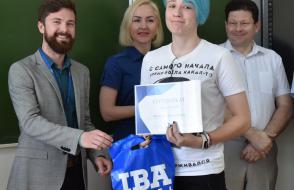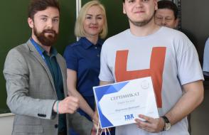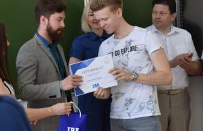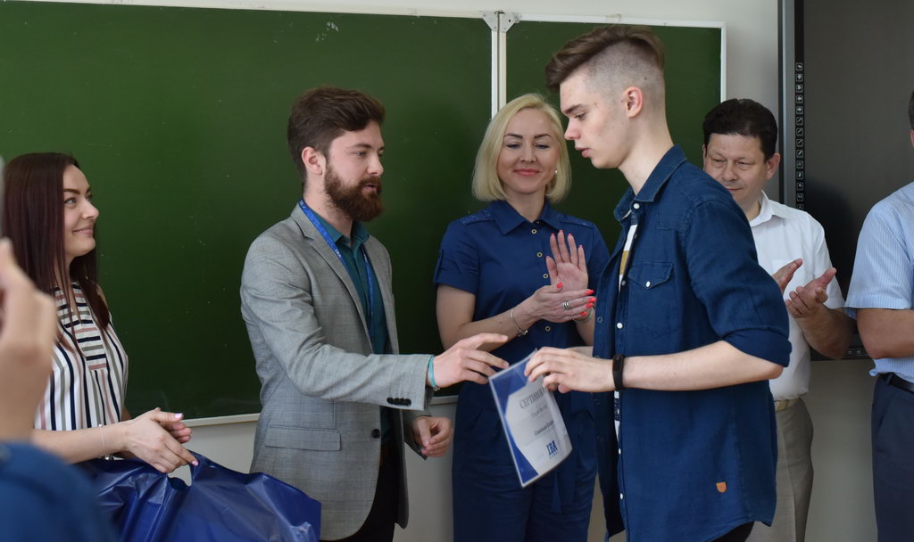 Представители IT-компании – менеджер по развитию персонала Евгения Судакова и инженер-программист Артемий Кожемякин вручили победителям сертификаты и памятные призы.