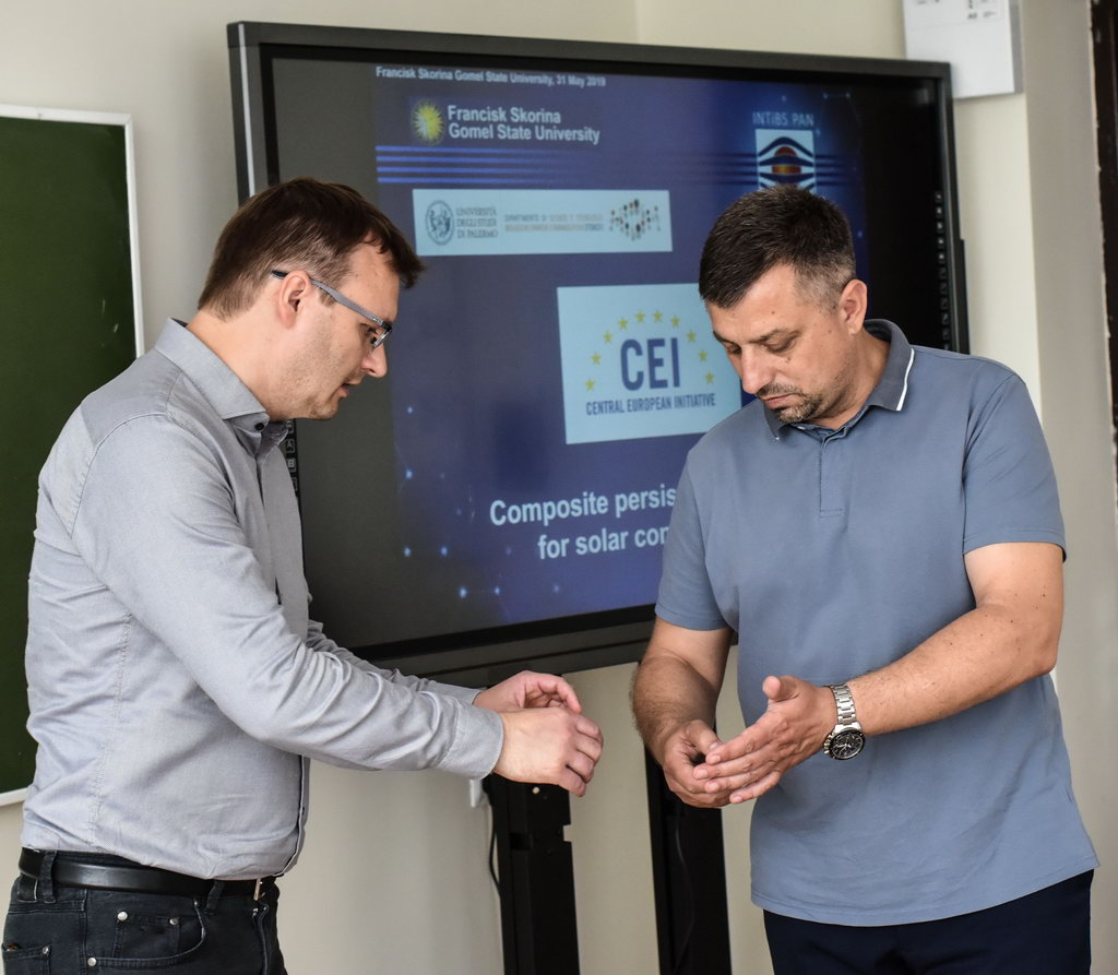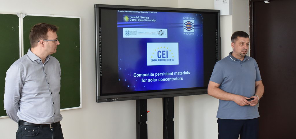 Целью проекта является разработка способов синтеза золь-гель композитов, обладающих люминесцентными свойствами, для применения в солнечных концентраторах. Для использования в солнечных концентраторах крайне важно разработать люминофоры, преобразующие излучение Солнца в синем и ультрафиолетовом диапазоне, в излучение красного и инфракрасного спектрального диапазона, который может поглощаться солнечными элементами и преобразовываться ими в электрическую энергию. Изменяя тип легирующих ионов и их концентрации, можно изменять спектрально-люминесцентные свойства материалов. В случае, если используемые люминофоры обладают постоянной люминесценцией, солнечный элемент может работать даже при отсутствии освещения (например, ночью). Золь-гель метод, успешно разрабатываемый в ГГУ им. Ф. Скорины,  позволяет синтезировать пленки для применения в солнечных элементах в качестве как защитных покрытий, так и люминесцентных преобразователей излучения из УФ в видимый диапазон. Студенты и магистранты имеют возможность  ознакомиться с результатами, полученными при выполнении этого проекта, а также с другими совместными достижениями белорусских и польских ученых.