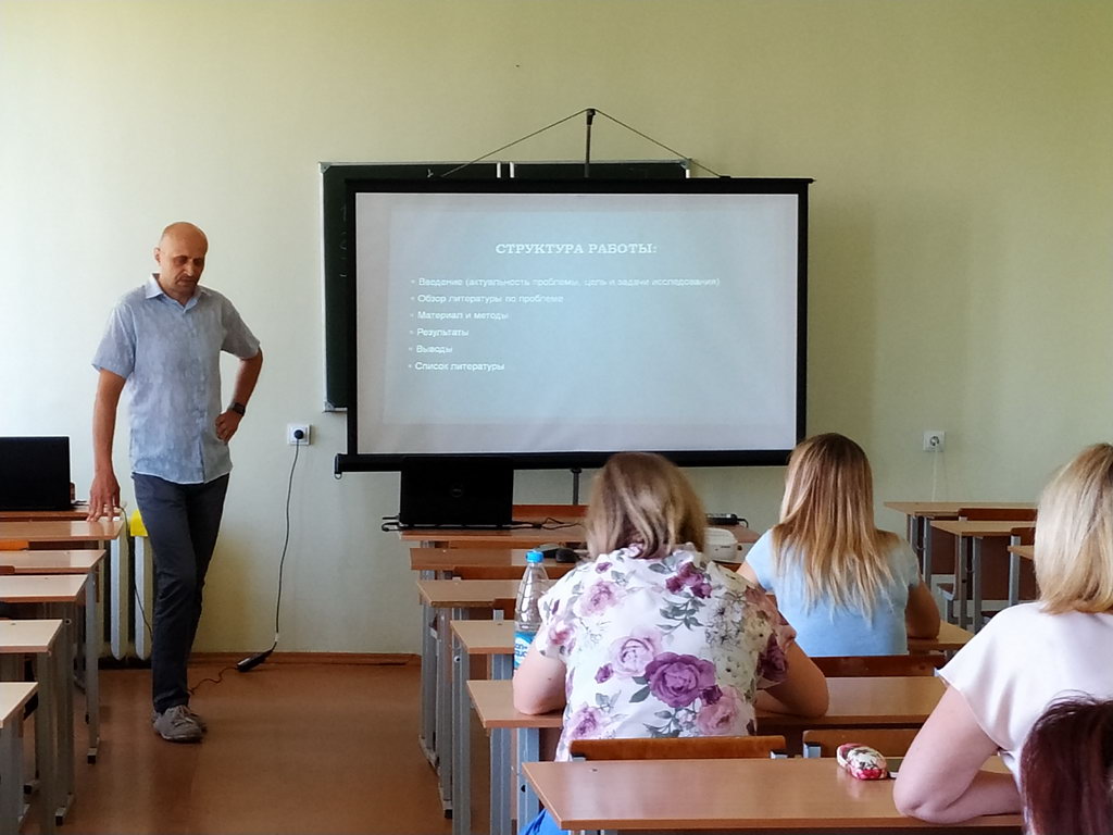 С докладом об актуальных направлениях научно-исследовательских работ выступил декан геолого-географического факультета Андрей Гусев. Он дал рекомендации, как формулировать цель и гипотезу, задачи исследования, определять предметно-объектную область, рассказал о требованиях, предъявляемых к работам подобного уровня. Среди слушателей возникли вопросы по созданию картографического материала, внедрению в исследовательские работы GIS-технологии.