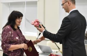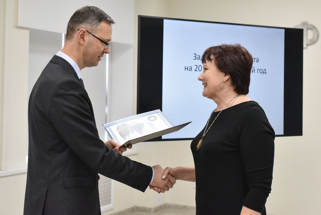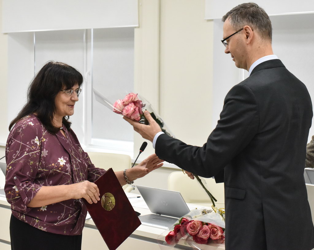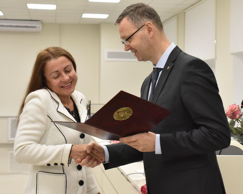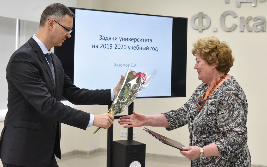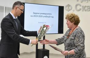 По традиции, оно началось с торжественного чествования заслуженных работников учреждения образования. За многолетний труд на благо вуза, эффективную работу по подготовке квалифицированных специалистов высшей награды университета – Почетной грамоты – были удостоены одиннадцать преподавателей и сотрудников ГГУ имени Ф. Скорины.