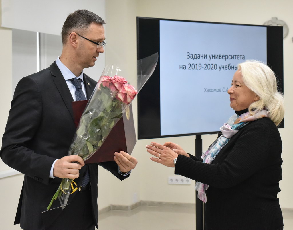 Ключевым вопросом повестки стало обсуждение основных целей и направлений деятельности вуза в новом учебном году. Выступая перед коллективом, ректор Сергей Хахомов изложил задачи, которые сегодня стоят перед университетом. Одной из них является цифровизация различных процессов. Это и создание единой цифровой базы данных, разработка мобильных приложений «ГГУ», «Расписание занятий», «Абитуриент», совершенствование электронного студенческого билета, переход на электронные дипломы о высшем образовании и др.