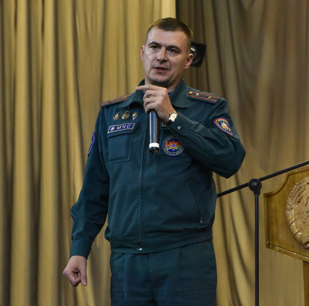 Заместитель начальника Гомельского городского отдела МЧС Бураков Александр Сергеевич провел беседу о правилах пожарной безопасности и последовательности действий в экстренных ситуациях. Заключением выступления стал обучающий видеоролик.