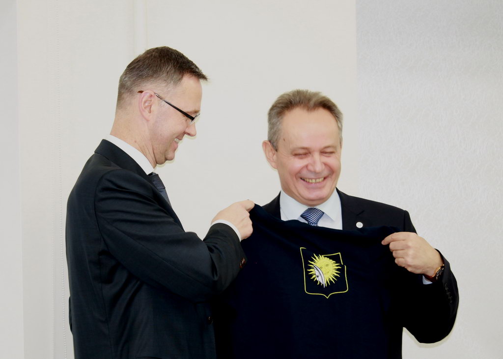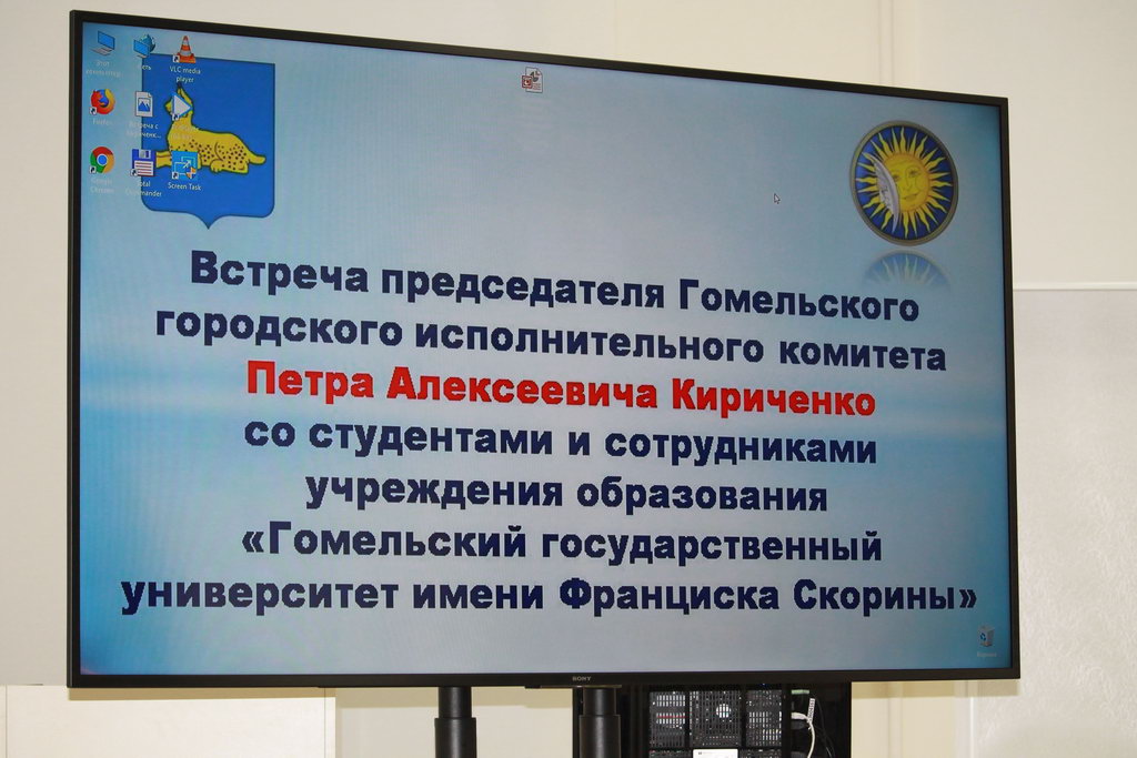 О развитии международных контактов, совершенствовании транспортной сети и перспективных планах развития областного центра поговорили студенты и преподаватели ГГУ имени Ф. Скорины на встрече с председателем Гомельского городского исполнительного комитета Петром Кириченко.
