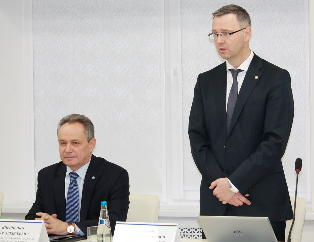 В мероприятии принял участие ректор старейшего вуза Гомельщины Сергей Хахомов. Поприветствовав гостей, он призвал аудиторию к активному участию в беседе. Пётр Алексеевич начал свое выступление с доклада о социально-экономическом развитии города. Председатель горисполкома рассказал о результатах, которых удалось добиться в промышленности и транспортной системе, строительстве и здравоохранении, образовании, науке и культурной жизни Гомеля.