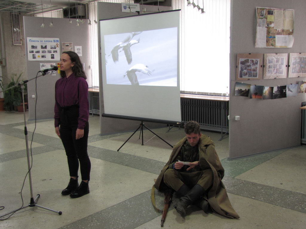 Эти строки Семена Гудзенко стали своеобразным эпиграфом к музыкально-литературной композиции, которая была представлена в выставочном зале нашего университета. Безусловно, дата для показа выбрана неслучайно. 26 ноября Гомель отмечает 76-ую годовщину освобождения от немецко-фашистских захватчиков.