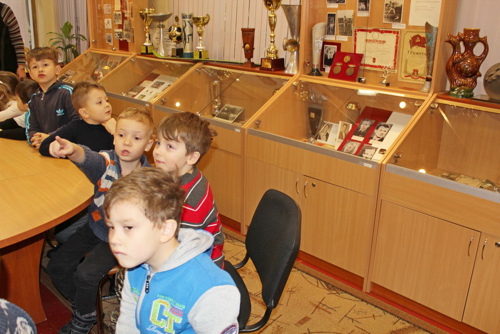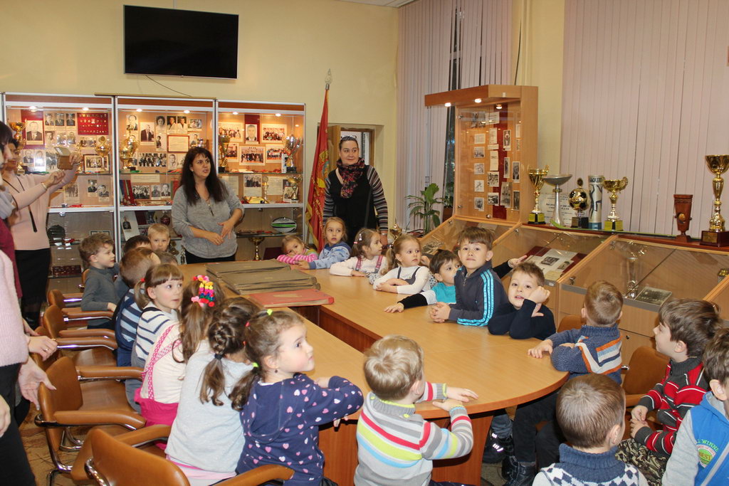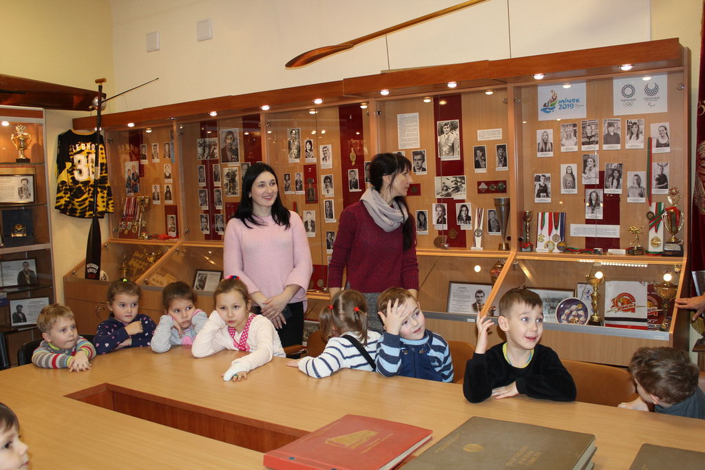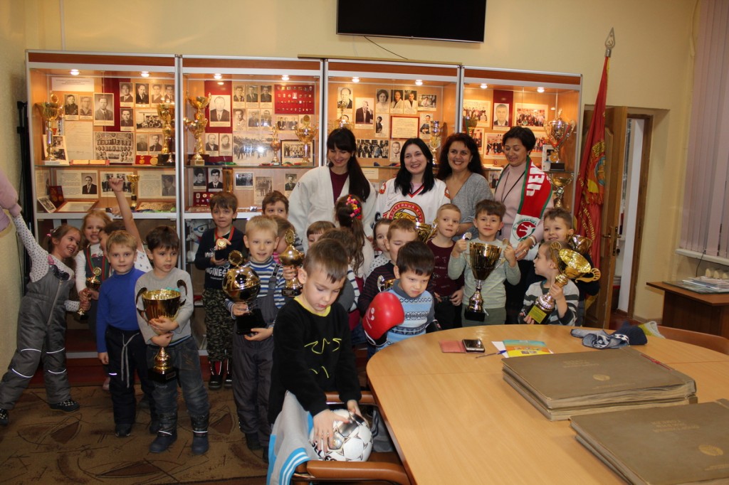 5 декабря в рамках общеуниверситетской Недели волонтера в музее-лаборатории спортивной славы Гомельщины было проведено мероприятие «Спорт вокруг нас». Гостями университета были воспитанники старшей группы подшефного учреждения дошкольного образования. В ходе познавательной беседы-экскурсии (с викториной, загадками, показом мультфильма) малышам в доступной форме рассказали о видах спорта, спортсменах, соревнованиях и болельщиках. При этом демонстрировались соответствующие экспонаты музея. Надо отметить, что дети очень активно и с удовольствием и главное правильно отвечали на вопросы. А когда им разрешили взять в руки кубки, футбольные мячи, примерить медали, восторгу и радости не было предела.