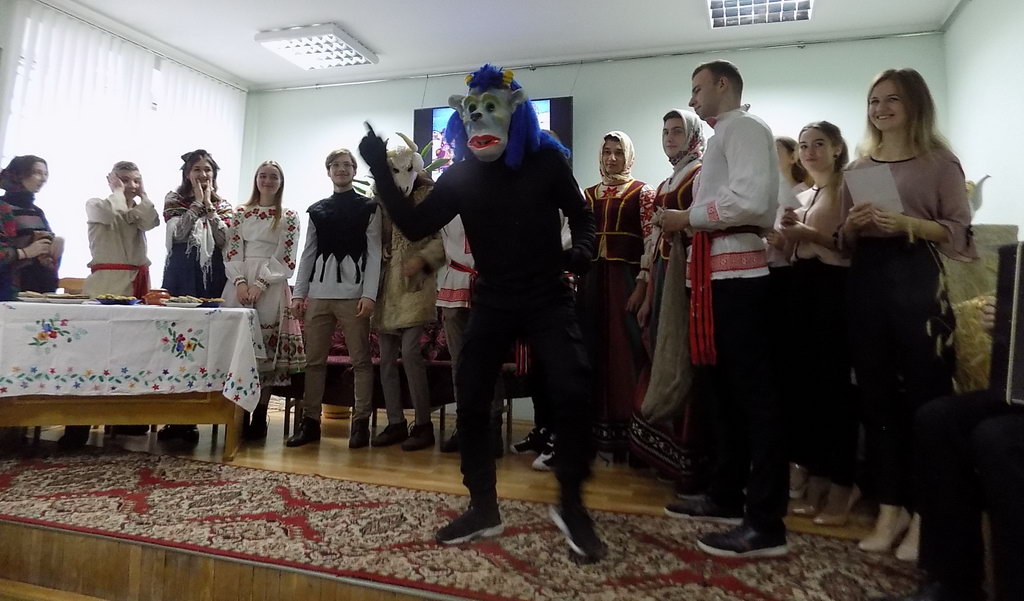 11 снежня ў актавай зале Славянскай бібліятэкі адбылося маляўнічае свята “Каляды”, якое падрыхтавалі студэнты групы ГР-21 геолага-геаграфічнага і студэнты групы БФ-21  філалагічнага факультэтаў ГДУ імя Ф.Скарыны пад кіраўніцтвам прафесара кафедры рускай і сусветнай літаратуры Валянціны Станіславаўны Новак і дацэнта кафедры беларускай мовы Святланы Анатольеўны Вяргеенка.