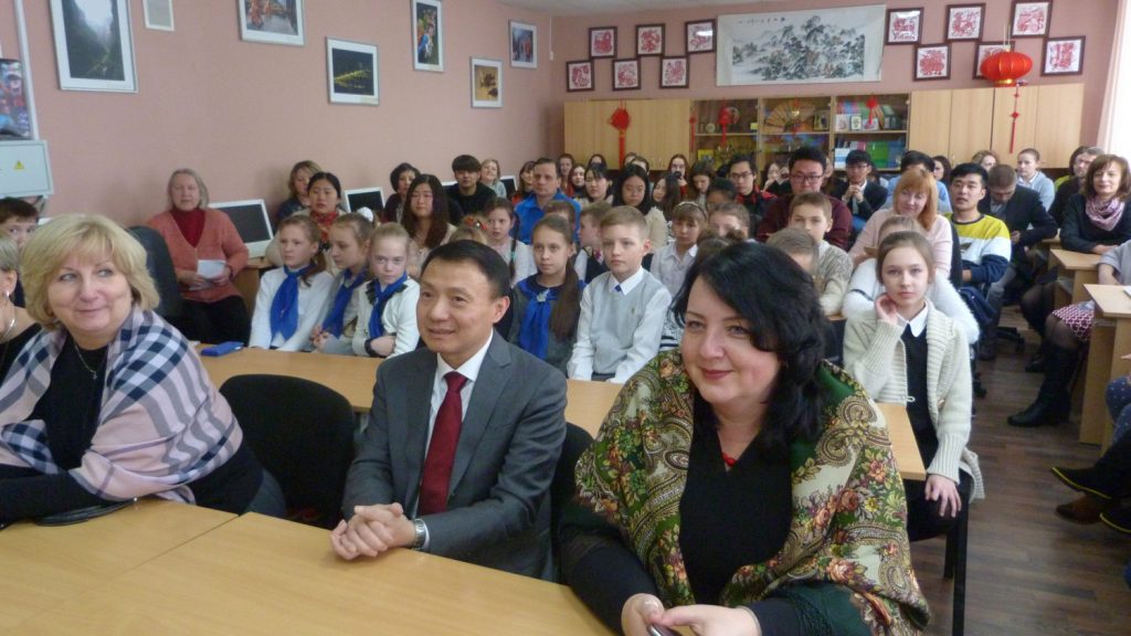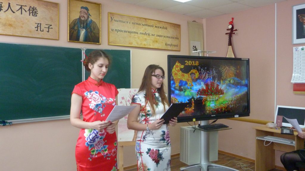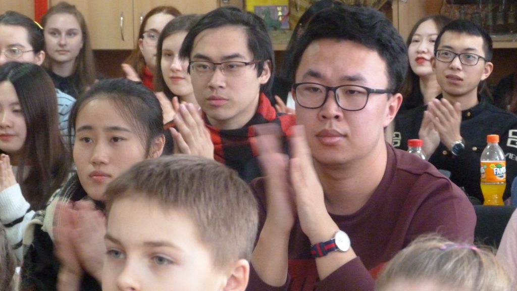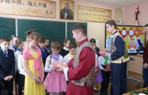 22 февраля аудитория 2-23 учебного корпуса №1, где находится Кабинет китаеведения, с трудом вместила всех тех, кто пришел посмотреть, как же отмечается традиционный китайский Новый год – чунь цзе, праздник весны. Особую значимость этому мероприятию – одному из центральных в плане работы Института Конфуция при ГГУ им. Ф. Скорины – придало не только присутствие директора Института (с китайской стороны) г-на Ван Лэя, приехавших из Шанхайского института коммерции, индустрии и  иностранных языков одиннадцати китайских студентов-филологов и обучающихся в университете китайских магистрантов, но и гимназистов и школьников города Гомеля, изучающих китайский язык в гимназиях №№ 10 и 56 и в средней школе № 72.