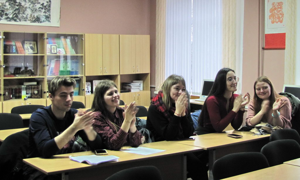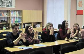Так, 23 декабря состоялся праздничный турнир «Что? Где? Когда?», посвящённый Новому году и Рождеству. На этот раз в роли организатора и ведущего игры попробовала свои силы студентка 4 курса группы РФ-41 Анастасия Лобанович, при поддержке педагога дополнительного образования по кружку интеллектуальных игр, выпускника исторического факультета Ильи Кутикова, а также тренера и ведущего «Что? Где? Когда?» в ГГУ имени Ф. Скорины Александра Вороненко.