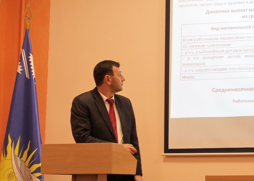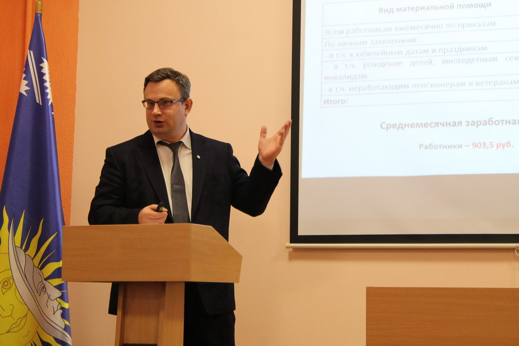 О ходе выполнения Коллективного договора между администрацией и профсоюзной организацией сотрудников и Соглашения между администрацией и профсоюзной организацией студентов университета присутствующих проинформировали председатель профкома сотрудников Николай Галиновский, председатель профкома студентов Сергей Азявчиков и представитель администрации, первый проректор Андрей Крук.