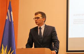 С информацией о ходе выполнения Плана развития университета выступили проректор по учебной работе Игорь Семченко, проректор по научной работе Олег Демиденко и начальник информационно-аналитического отдела Дмитрий Тарасов.