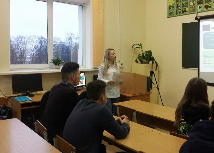 Встреча началась с презентации факультета, которую представила студентка 3 курса, активный участник образовательной клиники «Живое право» Анастасия Яркова. Школьники узнали об истории становления и развития факультета, о его достижениях и возможностях на современном этапе в вопросах подготовки профессиональных юристов, а также об условиях, которые созданы на факультете для личностного и профессионального становления и развития обучающихся. Ребята узнали, что выпускники нашего факультета работают буквально во всех общественно важных сферах.