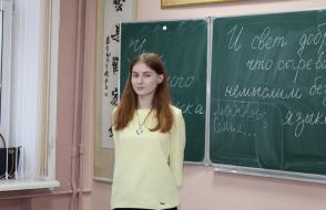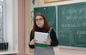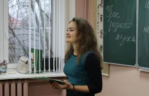 Тематическую неделю открыл урок родного языка для первокурсников, подготовленный студентами третьего курса под руководством преподавателей кафедры русского, общего и славянского языкознания Елены Холявко и Инны Гомоновой.