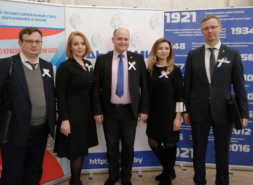Ректор ГГУ имени Ф. Скорины Сергей Хахомов и председатель профсоюзного комитета сотрудников Николай Галиновский приняли участие в Х съезде Белорусского профсоюза работников образования и науки, который прошел 19 февраля в Республиканском дворце культуры профсоюзов.
