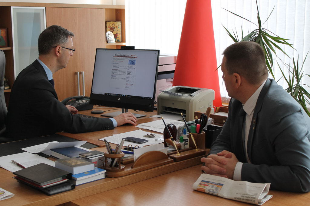 На встрече Сергей Хахомов и Андрей Злотников обсудили пути активного взаимодействия между учреждением образования и Палатой Представителей Национального Собрания Республики Беларусь. В ходе беседы стороны также рассмотрели вопросы использования в образовательном процессе информационно-коммуникационных технологий – характерной тенденции настоящего времени.