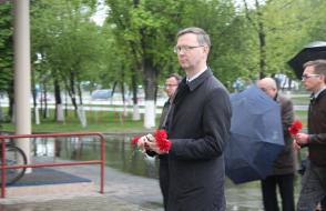 Накануне всеми любимого праздника Великой Победы представители ректората, общественных организаций, преподаватели и сотрудники ГГУ имени Ф. Скорины почтили память руководителя Гомельского подполья Романа Илларионовича Тимофеенко, воинов-освободителей, ученых, внесших значительный вклад развитие отечественной и мировой науки. В торжественной обстановке они возложили живые цветы и венки к братской могиле героев-подпольщиков и партизан. Память погибших почтили минутой молчания.