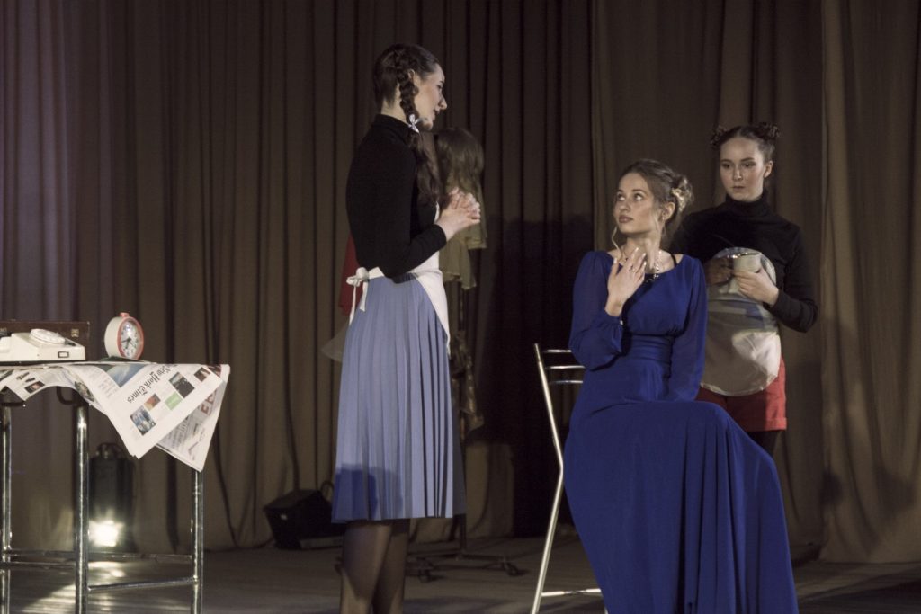 На сцене актового зала Гомельского государственного университета имени Франциска Скорины состоялся премьерный показ спектакля «Служанки» по пьесе Жана Жене в постановке С. Зенькова.